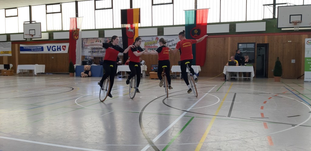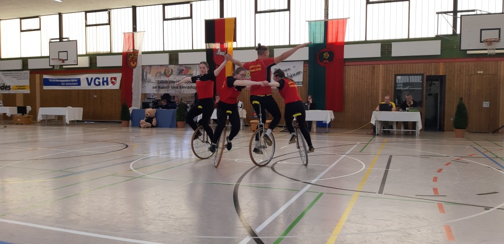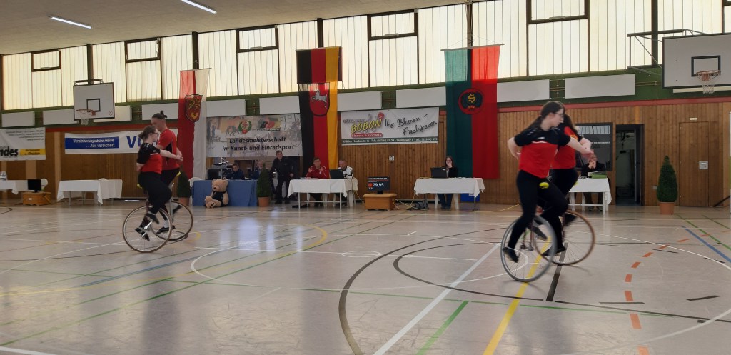 Zu den diesjährigen Landesmeisterschaften im Kunst-und Einradsport hatten sich im 1er Kunstradsport der Juniorinnen U19, Anja und Annabell Wagner, sowie die 4er Einradsportmannschaft der Junioren offen qualifiziert.
