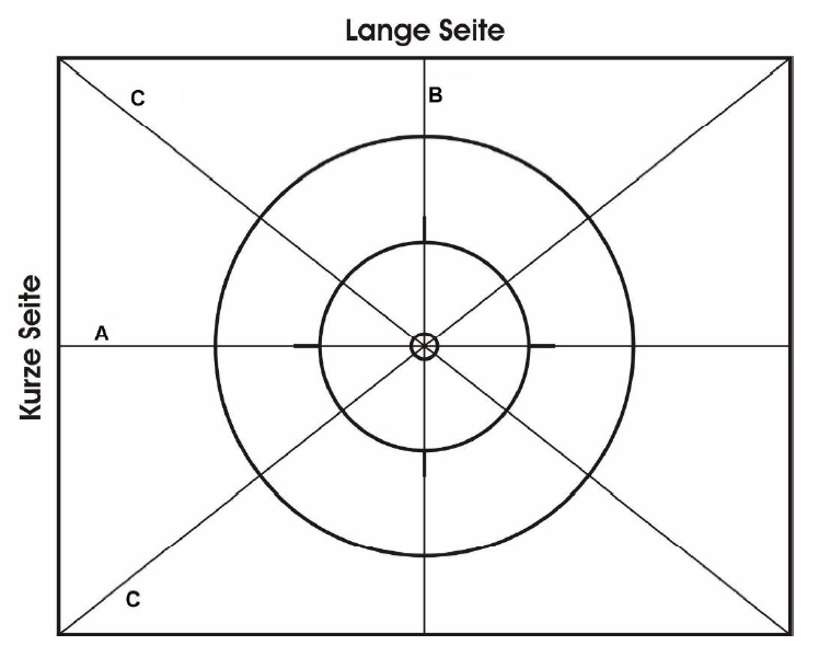 Die Außenmaße der Fahrfläche betragen 12-14 m in der Länge und 9-11 m in der Breite. Am Mittelpunkt der Fläche befindet sich ein kleiner Kreis mit 50 cm Durchmesser. Der Innenkreis hat einen Durchmesser von vier Metern und der Außenkreis einen Durchmesser von acht Metern. Die Kreise dienen der Orientierung auf der Fahrfläche.